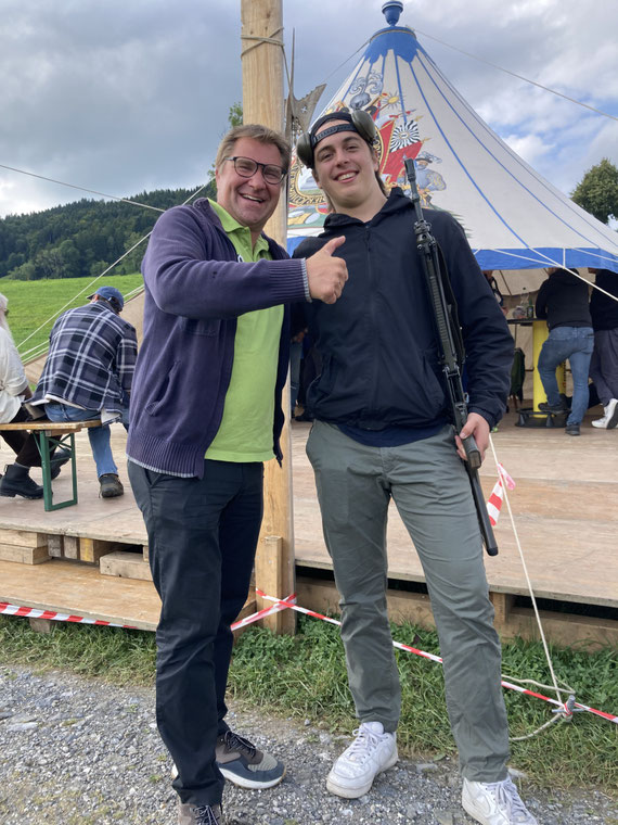 „ Stoss – Verbandspräsident Toni Brunner gratuliert unserem stolzen Jungschützen“